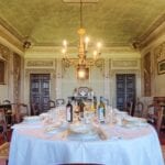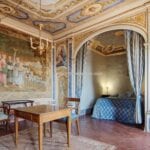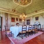 The main residence (1,437 sqm / 15,462 sqft) is a three-story building that has been carefully restored while preserving original features such as frescoes, stucco decorations, terracotta floors, and exposed wooden beams.
