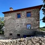 Luxury villa with pool for sale in Tuscany, near Roccastrada. Restored stone home with three bedrooms, energy-efficient systems, organic olive grove, vineyard and panoramic views. Furnishings included.