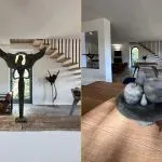 A contemporary staircase leads to the first floor, where three bedrooms are located, each with its own private bathroom.