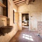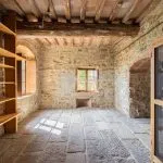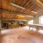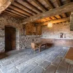 The main farmhouse measures 572 m² (6,155 ft²) across three floors and is habitable, though it would benefit from modernisation. Traditional Tuscan features such as stone walls, terracotta floors, and exposed wooden beams have been preserved.