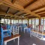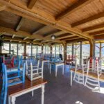 Common areas include the restaurant with a professional kitchen and panoramic veranda (84 sqm with space for about 130 guests), guest bathrooms and a dining room with a bar area on the middle floor.