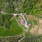 Further enhancing its appeal, the estate includes a variety of modern amenities such as a photovoltaic system for sustainable energy, private wells, and natural springs ensuring ample water supply, all crucial for maintaining the farm’s operations and guest facilities.