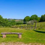In total, the estate covers 154.8 hectares (382.5 acres), mainly in a single contiguous block. Agricultural leases are in place with local operators. Cultivated land includes approximately 24.2 hectares of vineyards (planted with Grechetto, Chardonnay, Vermentino, Sangiovese, Ciliegiolo, and Pinot Noir), 1.5 hectares of olive groves, and 102.3 hectares of arable land used primarily for cereal crops. The remainder comprises approximately 23.6 hectares of mixed woodland.