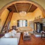 - MAIN FEATURES: Stone and brick walls, handmade terracotta flooring, vaulted ceilings, original fireplaces, wooden beams, original oven, large windows, loggias and porches, paved terraces, park, olive trees, swimming pools