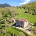 An additional rural outbuilding, a converted chestnut drying room, mirrors the main building’s meticulous restoration. It comprises a living room, kitchen, bedrooms, bathrooms, a terrace, and a basement cellar, all showcasing traditional Tuscan craftsmanship.