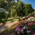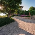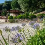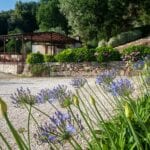 The property is surrounded by a park and 10 hectares (25 acres) of land with large green spaces covered in flowers and plants. Buildings have a gravelled square (usable as a car park) and the complex is reached via a perfectly maintained uphill unpaved road starting from the asphalt in the proximity of a metal gate.