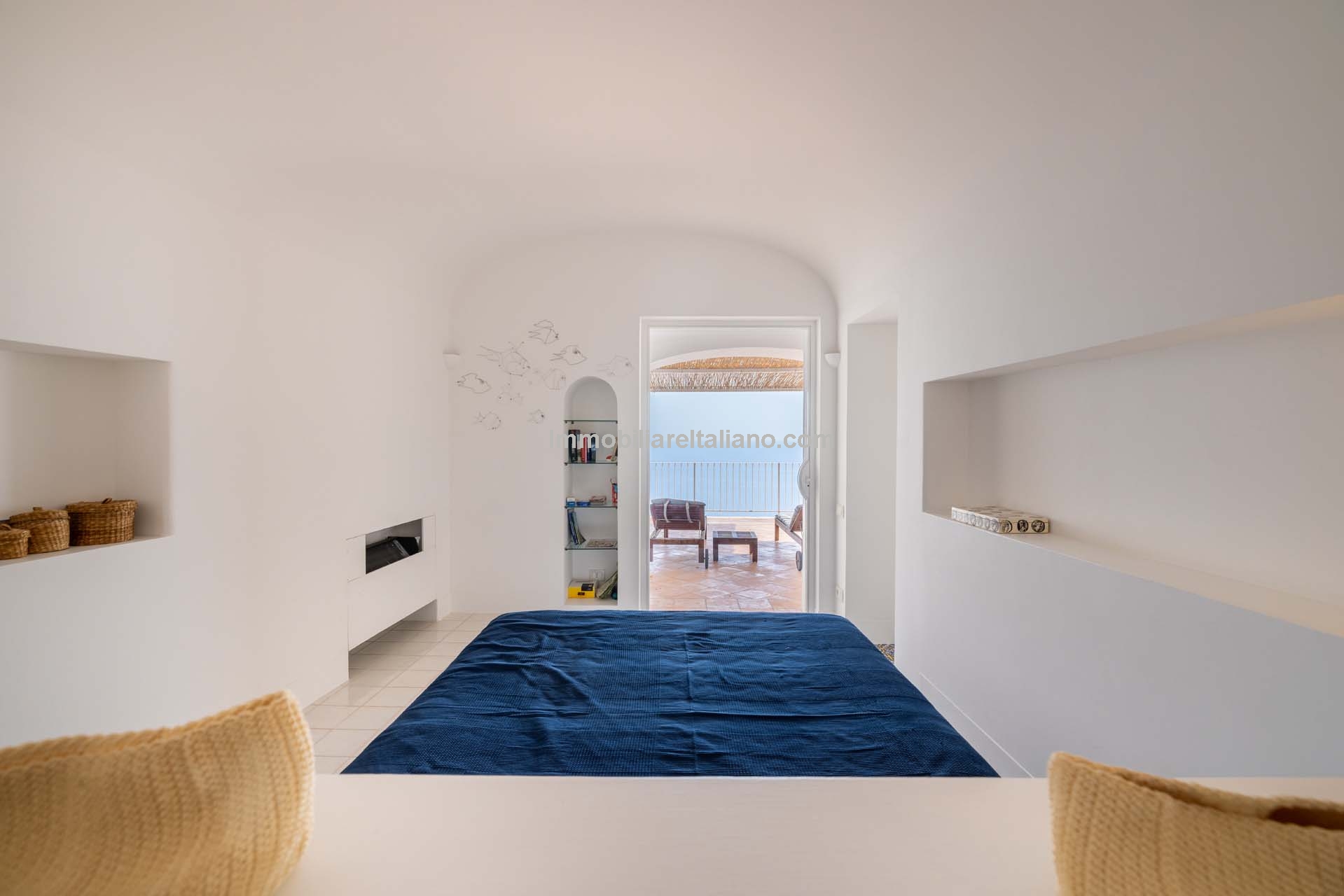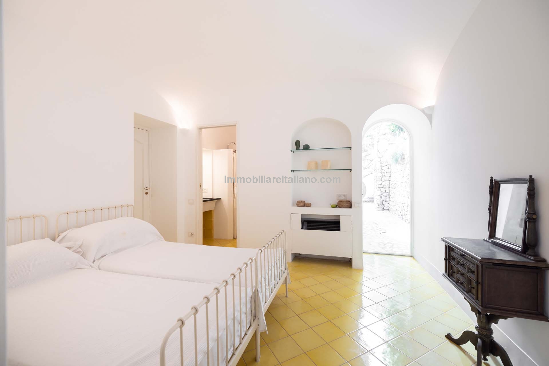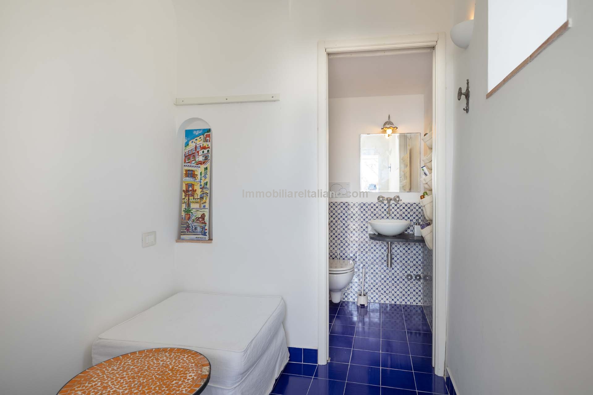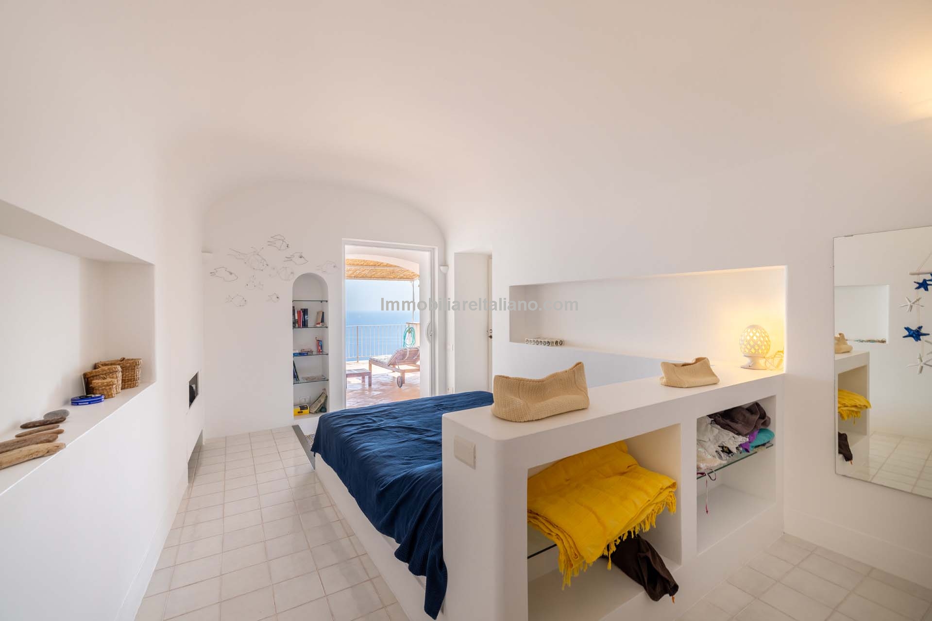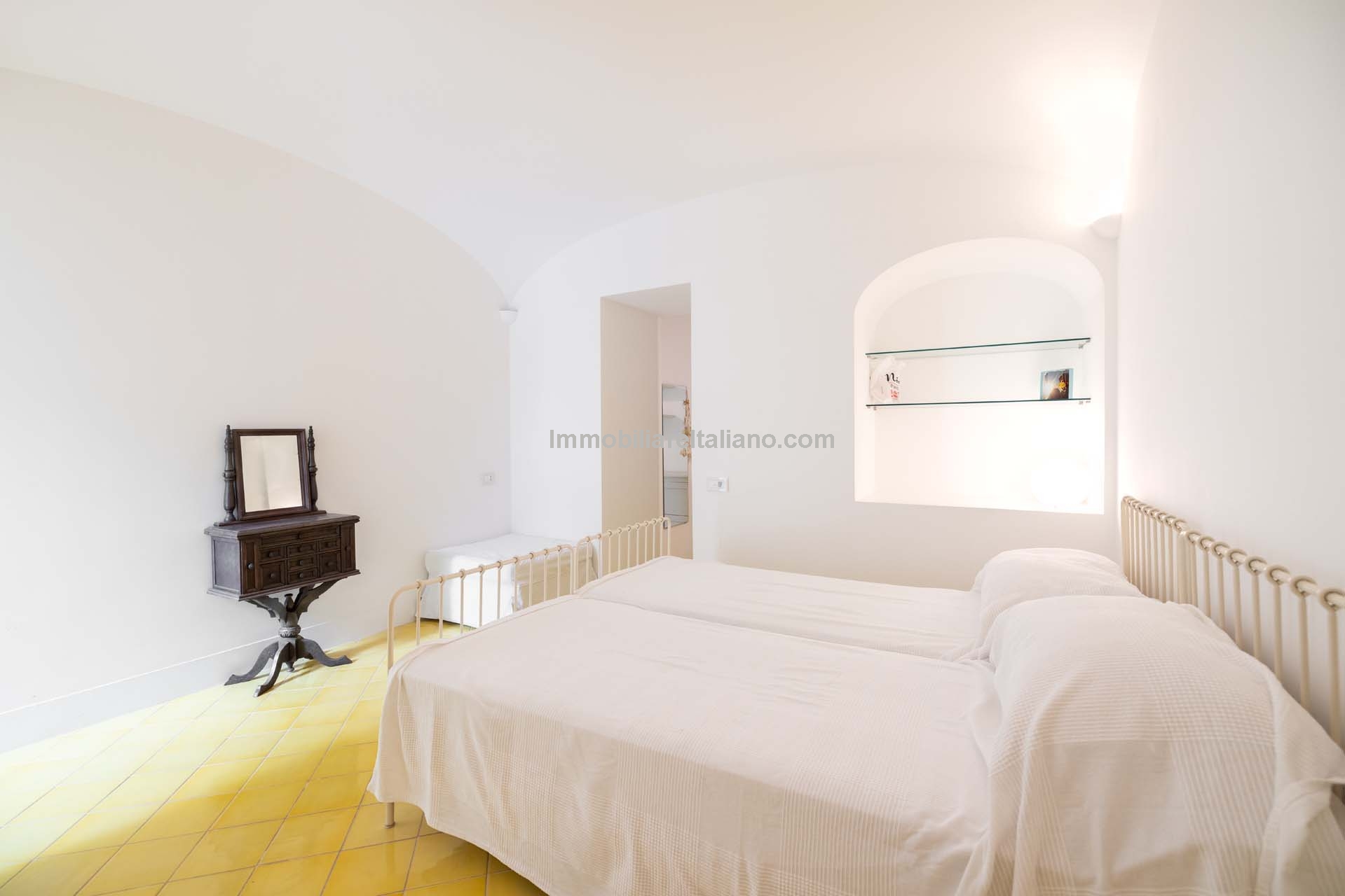 This property for sale in Italy with sea views is located in the historic centre of Praiano, one of the most sought-after locations within the Amalfi Coast real estate market. The apartment is fully restored and positioned to take advantage of open coastal views, with direct access via a private staircase leading through the garden.