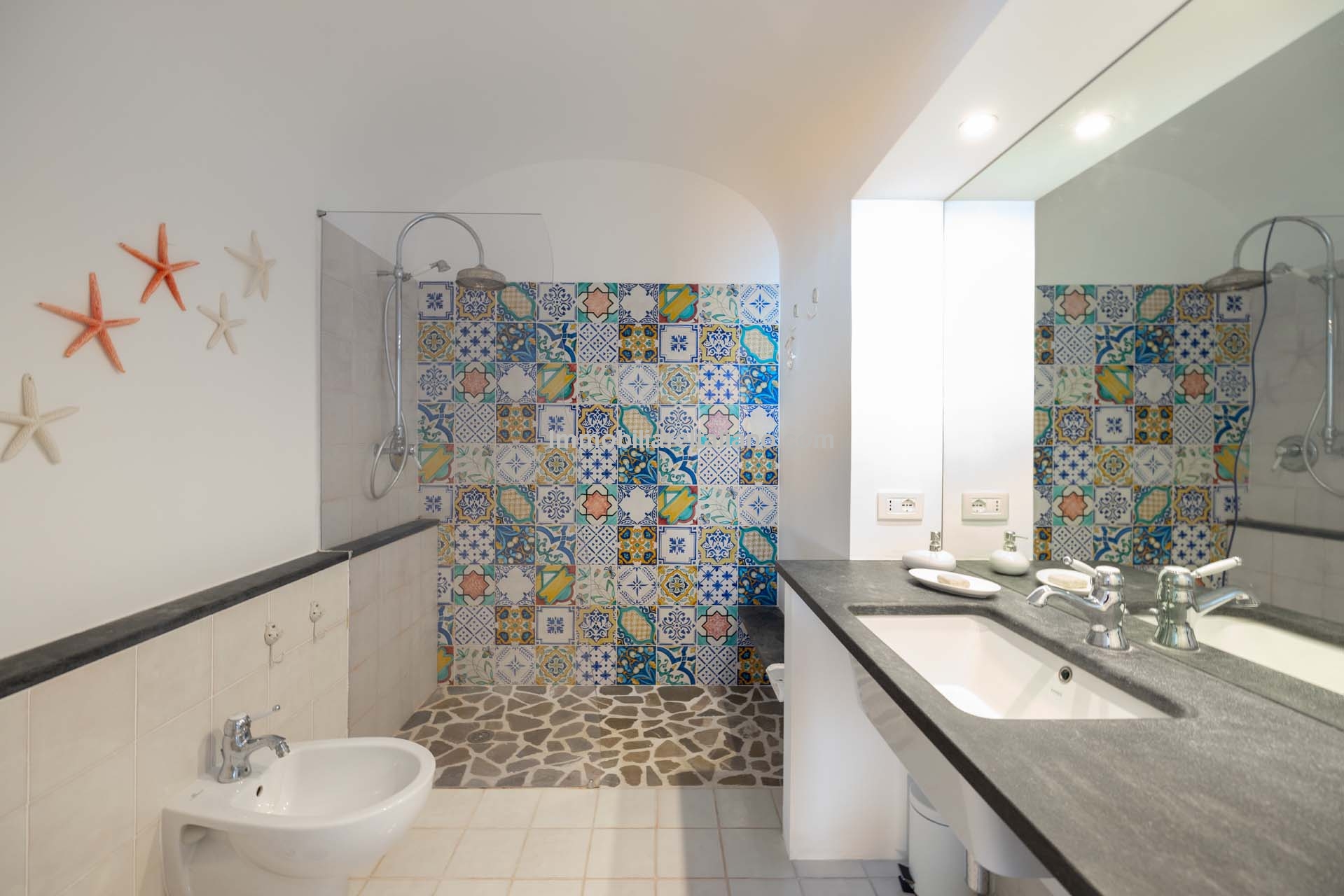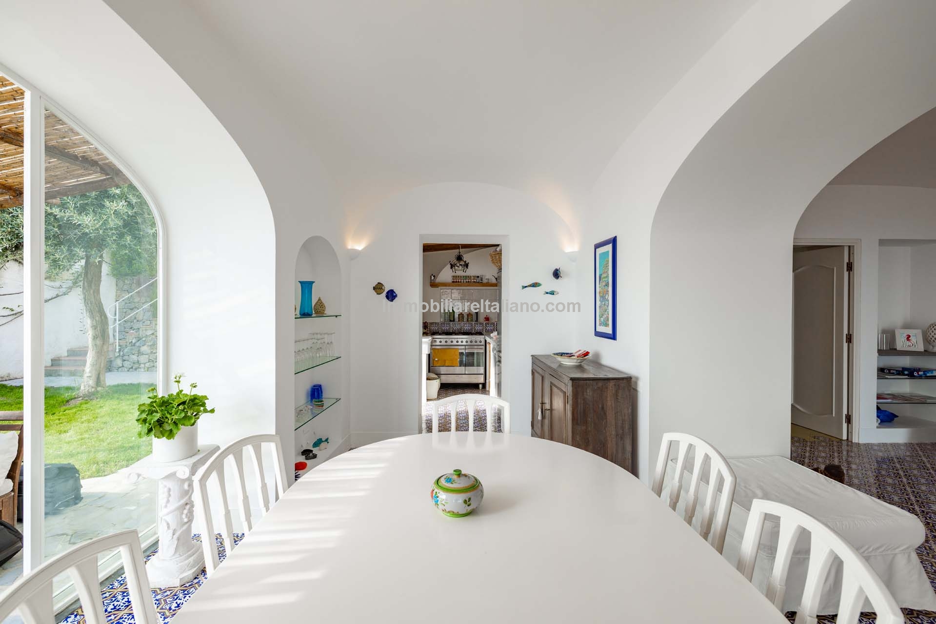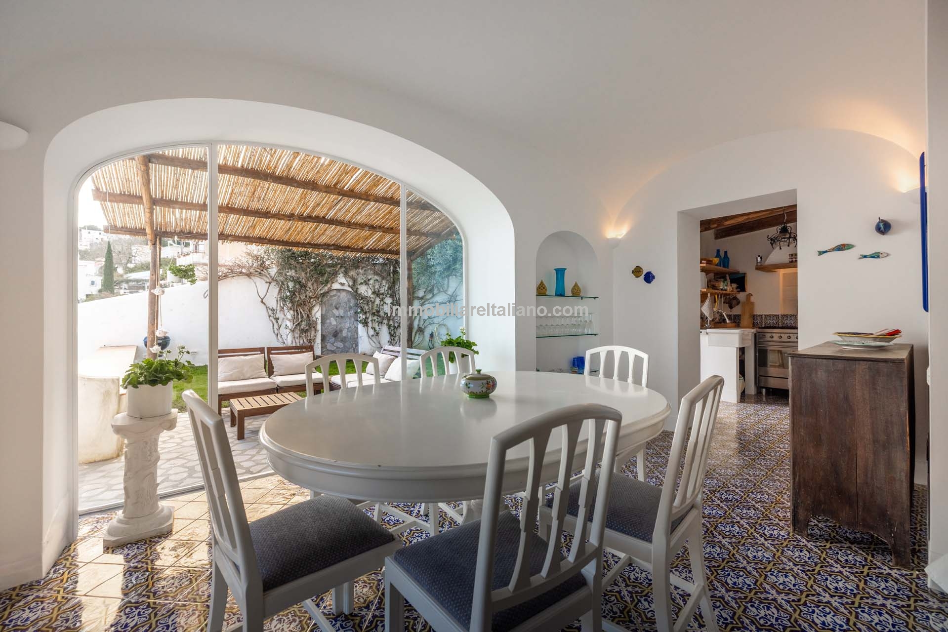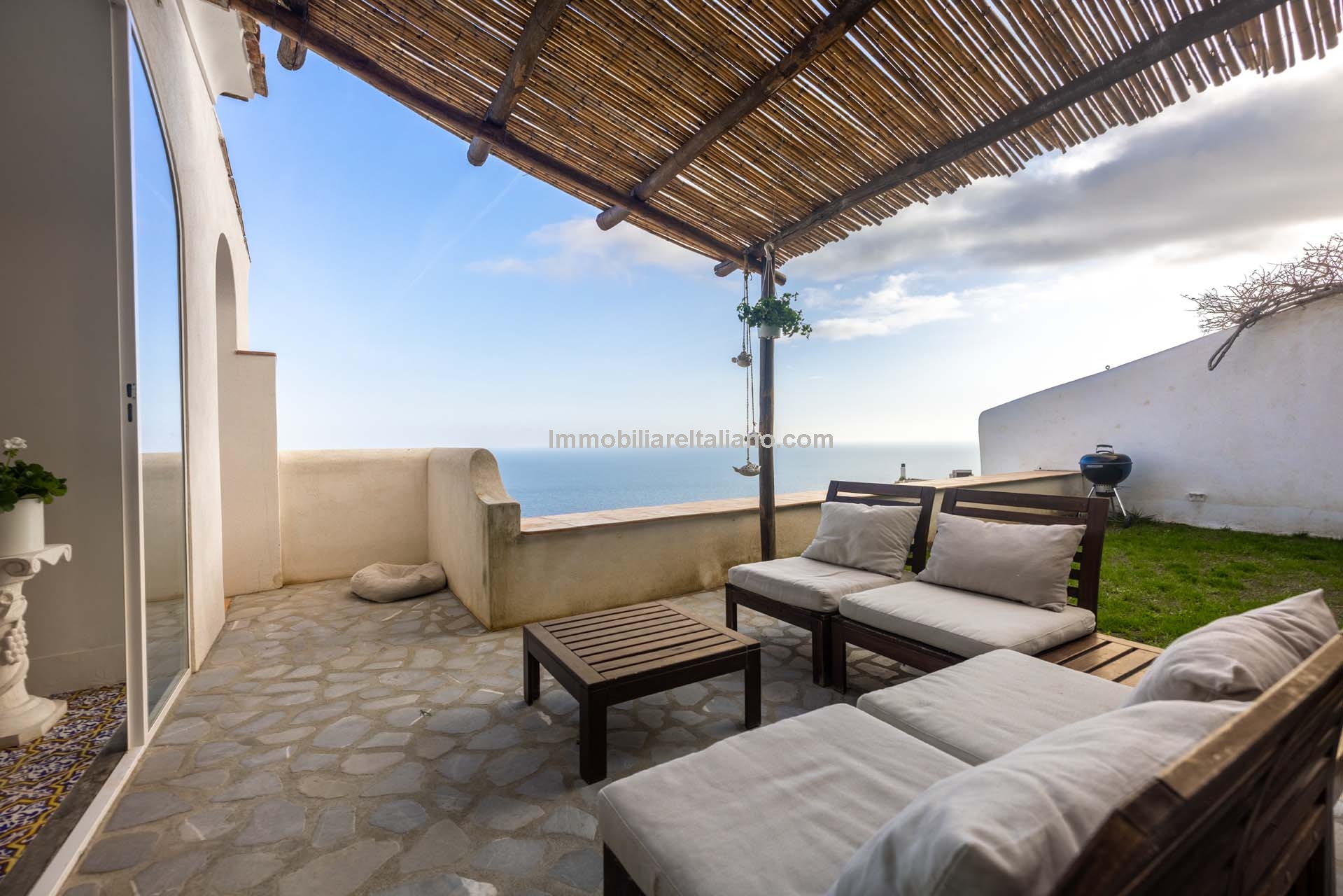 - MAIN FEATURES: Decorated ceramic flooring, vaulted ceilings, wooden beams, sea view terrace, private garden, pergolas, porch