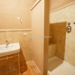 On the lower level there is a large dining room (or living room, depending on preferences), a secondary sitting room (potentially a dining room if one decides to use the previous room as a living area) and a kitchen. At the back, next to the staircase, a door leads to the guest bathroom with a shower.