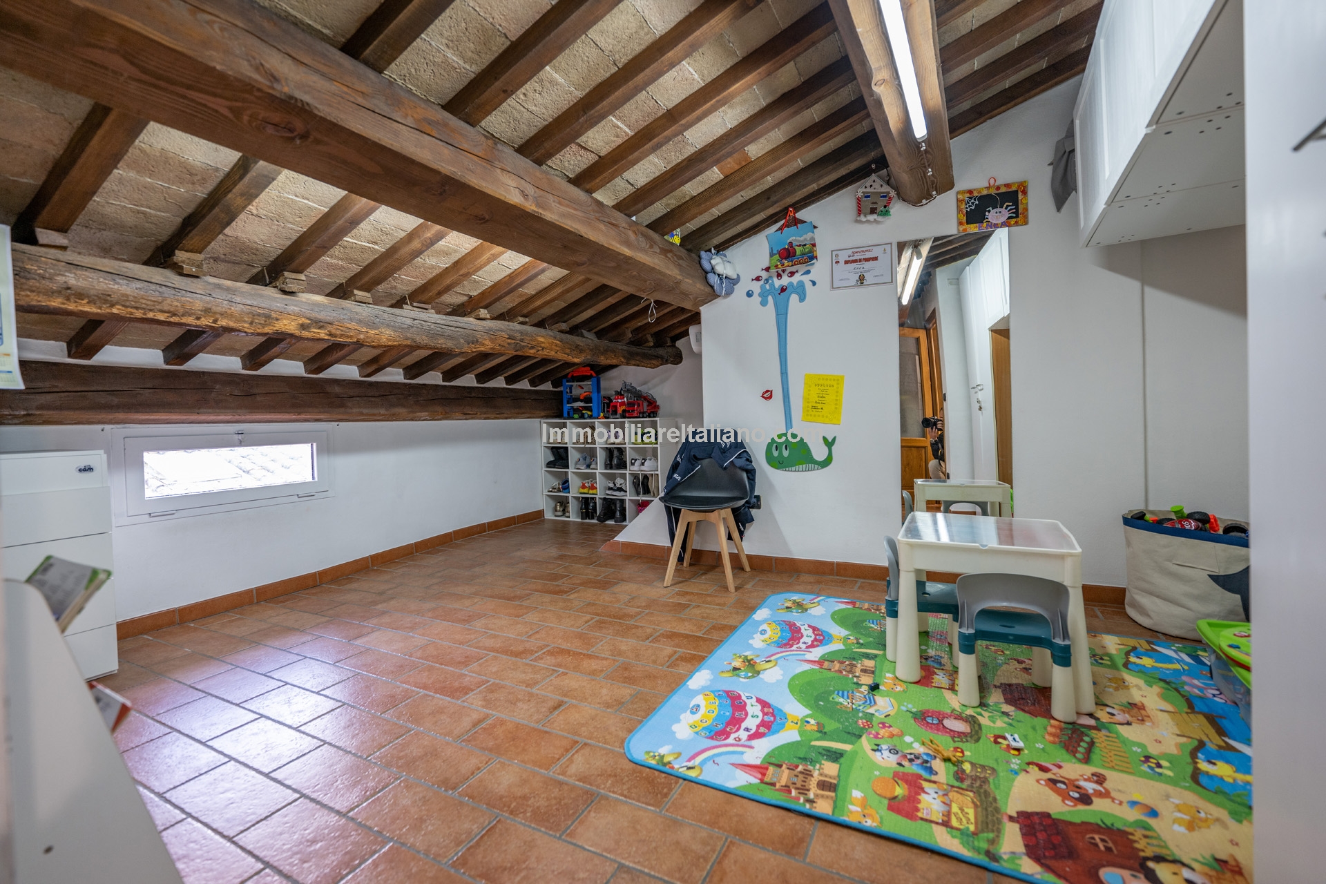 - MAIN FEATURES: Stone and brick walls, parquet flooring, wooden beams, stone fireplace, windows overlooking Via XX Settembre, historic property
