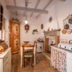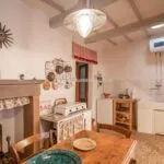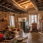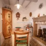 The apartment has a total surface area of 70 sqm – 753 sqft on two levels. On the ground floor (25 sqm) are two cellars and a garage, on the first floor (45 sqm) there is the living area with kitchen, living room, bedroom and bathroom. The apartment has wood-beamed ceilings, terracotta floors and a fireplace, and is already habitable without any necessary intervention. On the other hand, the ground floor is unfinished and needs some interventions (including the installation of fixtures) if an additional room were to be created.