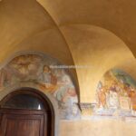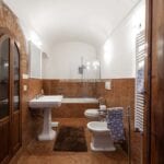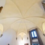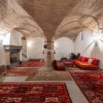 The northern apartment has a surface area of 238 sqm/2,561 sqft and features two bedrooms and two bathrooms. Its layout includes an entrance that can serve as a small bedroom, a corridor leading to a sacristy-turned-bedroom with garden access, and a master bedroom framed by pietra serena stone. The apartment also includes a dining/living area with a kitchen, a reading room with a door leading to the beautiful cloister of the convent, shared with other tenants and still bearing traces of the original frescoes., a converted crypt with vaulted ceilings serving as a spacious living area, and a storage room connected to the monastery’s original cantina.