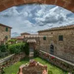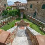 - FEATURES Stone walls, hamlet, apartments, storage room, gym, crenelation, Italian garden, park, panoramic pool, arched loggia, Florentine mullioned windows, ancient terracotta floors, wooden beams, brick arches, decorated fireplaces, wall decoration, frescoes, stained glass, stone steps