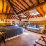 Positioned at the heart of the hamlet on a hilltop, the castle provides panoramic views and convenient access to key destinations in Tuscany. The nearest town with essential services is just 7 km away, while Bucine (18 km), Arezzo (43 km), Cortona (62 km), Siena (33 km), Montepulciano (53 km), Montalcino (70 km), Florence (74 km), and San Gimignano (77 km) are all within easy reach. Major airports include Florence Peretola (92 km), Perugia (105 km), Pisa (153 km), Bologna (174 km), and Rome’s Ciampino (234 km) and Fiumicino (249 km).