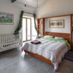 The main building is a historic structure that once housed one of the region’s oldest oil mills. The three-story building includes a winemaking cellar, brewing room, and storage area on the basement level. The ground floor is used as a tasting and sales room with a guest bathroom. The first floor offers a private apartment with a large kitchen, bedroom with en-suite bathroom, a small office, and a loft storage area.