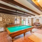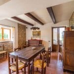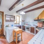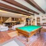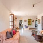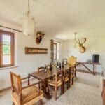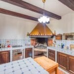 The main farmhouse has a surface area of 319 sqm – 3,432 sqft with 6 bedrooms and 6 bathrooms and is a stone and brick building laid over two floors. The lower level houses a large open-plan living room with a dining area, a kitchen, a small entrance hall and a storage room at the back with an adjoining service bathroom. From the living room, one then exits onto a lovely porch with an oven, ideal for outdoor dining.
