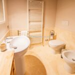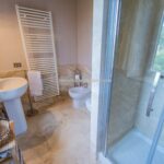 An internal or external staircase then leads to the upper floor, which is used entirely as a sleeping area: there are four bedrooms with en-suite bathrooms and two bedrooms with shared bathrooms. The possibility of independent access from the outside makes the rooms suitable for an accommodation business.