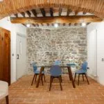 This distinctive property has been renovated to preserve its character, featuring large rooms, high ceilings with exposed beams, floors made from reclaimed original terracotta tiles, several walls with exposed stone, and original terracotta arches. Numerous large windows overlooking the town alleys make the rooms airy and bright, benefiting from light from two façades on parallel alleys. Modern amenities include an elevator, modern lighting, independent heating areas, and air conditioning, ensuring comfort and convenience.