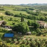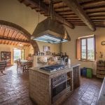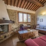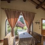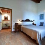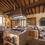 The traditional look doesn’t mean that modern comforts and amenities are missing: a 7-kW photovoltaic system (installed in May 2008) produces 9,000 kWh of electric power each year, covering up to 80% of the farmhouse energy needs. Another solar system is used to produce hot water for showers and heating. There is also a gas system connected with three underground tanks (1,600 litres each for a total of 4,800 litres of fuel) which can integrate with the solar system functions. The independent apartment on the ground floor and the guesthouse are fitted with independent gas heating.