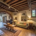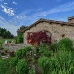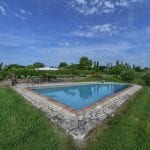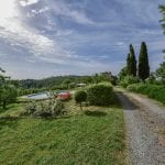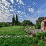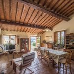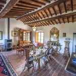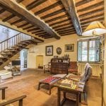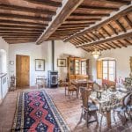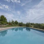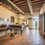 This lovely Tuscan property for sale stands in approximately 3.0 hectares of land. Around the farmhouse, there is a well-maintained garden (roughly 3,000 sqm) with roses, lavender, and rosemary and an orchard with cherry trees, peach trees, vines and apple trees. Not far from the farmhouse is located the round-edge 15 x 8 m swimming pool (with a depth ranging from 1.2 and 2.8 m).