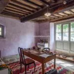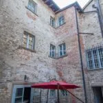 From the paved courtyard (roughly 40 sqm – 430 sqft) you can access to a spacious independent cellar (52 sqm – 559 sqft) which is currently used as a workshop and for storage. The garden (230 sqm – 2,475 sqft), triangular in shape, is located to the side of the castle and there is a convenient parking area alongside the road.