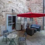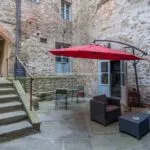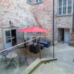 3 Bedroomed ground floor apartment in a small medieval castle. Restored, private courtyard, garden and a spacious cellar/workshop. Great holiday home, vacation rental or is ideal to live in year round. Nicely priced.