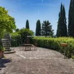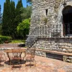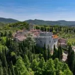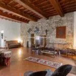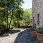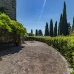 The estate is located at the edge of the inhabited village and extends into the surrounding woods and olive groves. The castle is accessible through two independent entrances, one from the village and one from the castle’s garden.