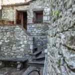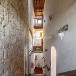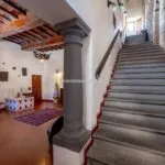 The main entrance, accessible from the village, leads into a grand hall featuring a stunning, ancient staircase that ascends to the upper floors and the tower. On the ground floor, you will also find a spacious kitchen that opens to the garden and a stone solarium, perfect for outdoor relaxation.