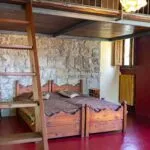 Adjacent to the main building is a small apartment with a separate entrance, comprising a kitchen-living room with a fireplace, a bedroom, and a bathroom.