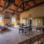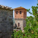 Building L (864 sqm) is the main castle. It includes a kitchen, reception halls, library, and eight bedrooms over multiple levels. The roof terrace offers expansive views of the Val d’Orcia.