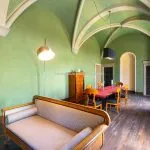 - MAIN FEATURES: Stone walls, wooden beams, vaulted ceilings, coffered ceilings, frescoes, decorated wallpaper, terracotta and marble floors, large windows, winding staircase, terraces, ruins to be restored, English-style park