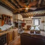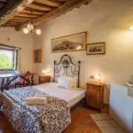 Located in the Tuscan countryside, a few minutes’ drive from Anghiari, inside a historic Medieval castle. The restored home offers 3 bedrooms and a private garden, and a small courtyard. Nearby is a ruined farmhouse (roughly 400 sqm – 4,304 sqft, on two floors) which, once restored, could offer another 4 bedrooms.