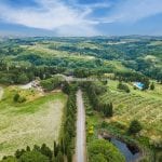 The estate is well-connected, with essential services just 9 km away and easy access via a paved road. Its central position in Tuscany allows for convenient visits to Florence, San Gimignano, Volterra, Pisa, and Lucca—all within an hour’s drive.