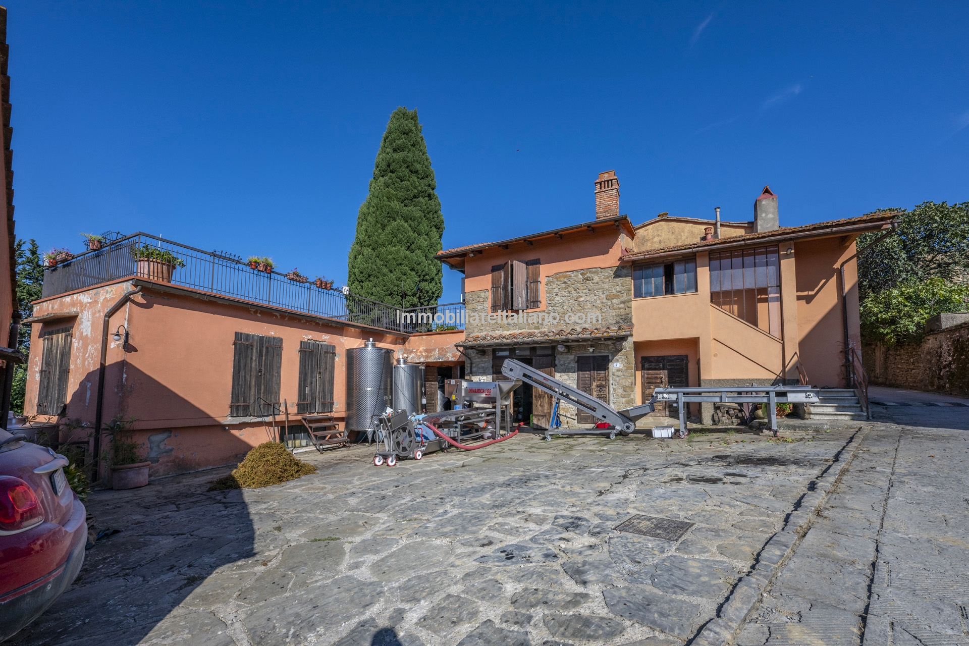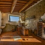 Adjacent to this building is a 100 sqm production structure used for bottling, storage of finished wines and employee facilities. Opposite the courtyard is another building of about 220 sqm, which includes an agricultural warehouse and a residential apartment, currently used as a wine-tasting and reception area for visitors. This unit provides a living room with a kitchen and a loggia, three bedrooms and three bathrooms.