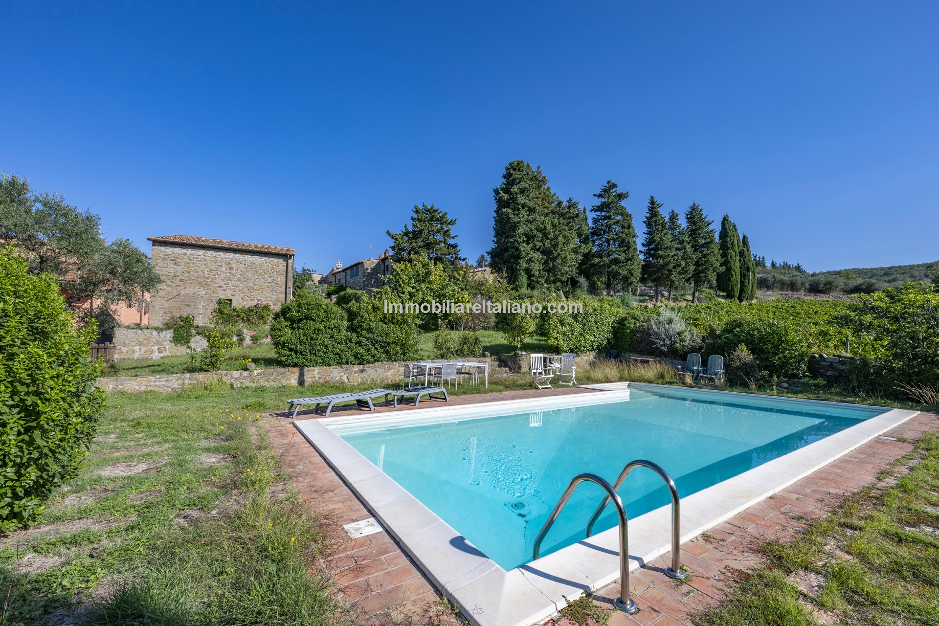 - MAIN FEATURES: Stone and brick walls, wooden beams, terracotta floors, wine cellar, private swimming pool, Chianti Classico DOCG vineyards, olive grove, metal fence for animals