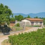 The garden around the farmhouse is entirely fenced and enclosed by two gates at each end, offering both privacy and security. In addition to greenery and a convenient gravel parking area for guests, there is a stunning 14 x 7-meter swimming pool with a terracotta sunbathing area and a view of the vineyards.