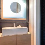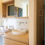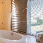 On the lower level is a fitness area, well-lit by a full-height glass wall, complete with its own bathroom with a shower. Located separately from the main building, the garage measures 30 sqm (323 sqft) and accommodates two vehicles.