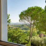 This contemporary villa for sale in Tuscany is situated in a panoramic location on the hills between Florence and Vinci, offering views over vineyards and olive groves. Built with a modern design, the 600 sqm (6,456 sqft) property offers six bedrooms and seven bathrooms across three levels, along with a private garden, swimming pool, and wellness area. The layout capitalises on the sloping landscape, offering direct access to each floor from the terraced garden.