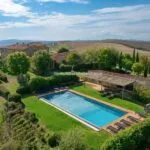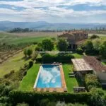On the timeless Tuscan hills between Crete Senesi and Valdorcia, this luxurious villa with an annexe and a swimming pool offers a unique opportunity to own a beautiful Tuscan property, not far from the region’s most renowned towns. The estate features a large rustic farmhouse villa and annexe, divided into five separate apartments, primarily used for guest accommodations, with a total of 12 bedrooms. Standing in over 2.2 hectares of land, the property also includes an olive grove with 250 trees and a private pond.