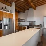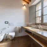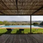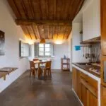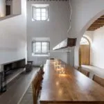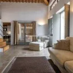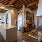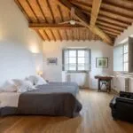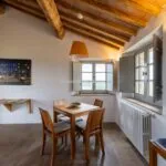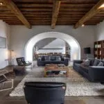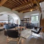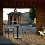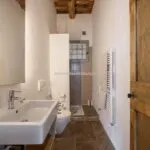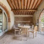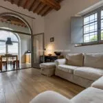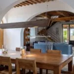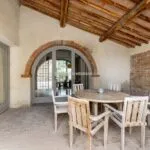 The farmhouse villa has a surface area of 485 sqm with 9 bedrooms, and 10 bathrooms and is a classic rural building characteristic of the Sienese countryside. Externally, it retains its rustic charm, while the interior has been modernized with contemporary finishes that respect the original materials. The design, managed by the owner, who is an experienced architect and interior designer, ensures a seamless blend of tradition and modernity and is divided into four independent living units: