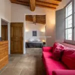 The annexe guesthouse has a surface area of 130 sqm with 3 bedrooms, and 3 bathrooms and complements the farmhouse, though it is entirely independent and accessible from the central courtyard. The guesthouse offers a spacious living room with a loft, a kitchen with its own private covered courtyard, and three bedrooms, all with en-suite bathrooms.