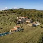 Modern energy efficient villa for sale in Umbria with lake views over Lake Trasimeno, 6 hectares of land, approved pool and guesthouse, A3 energy rating.