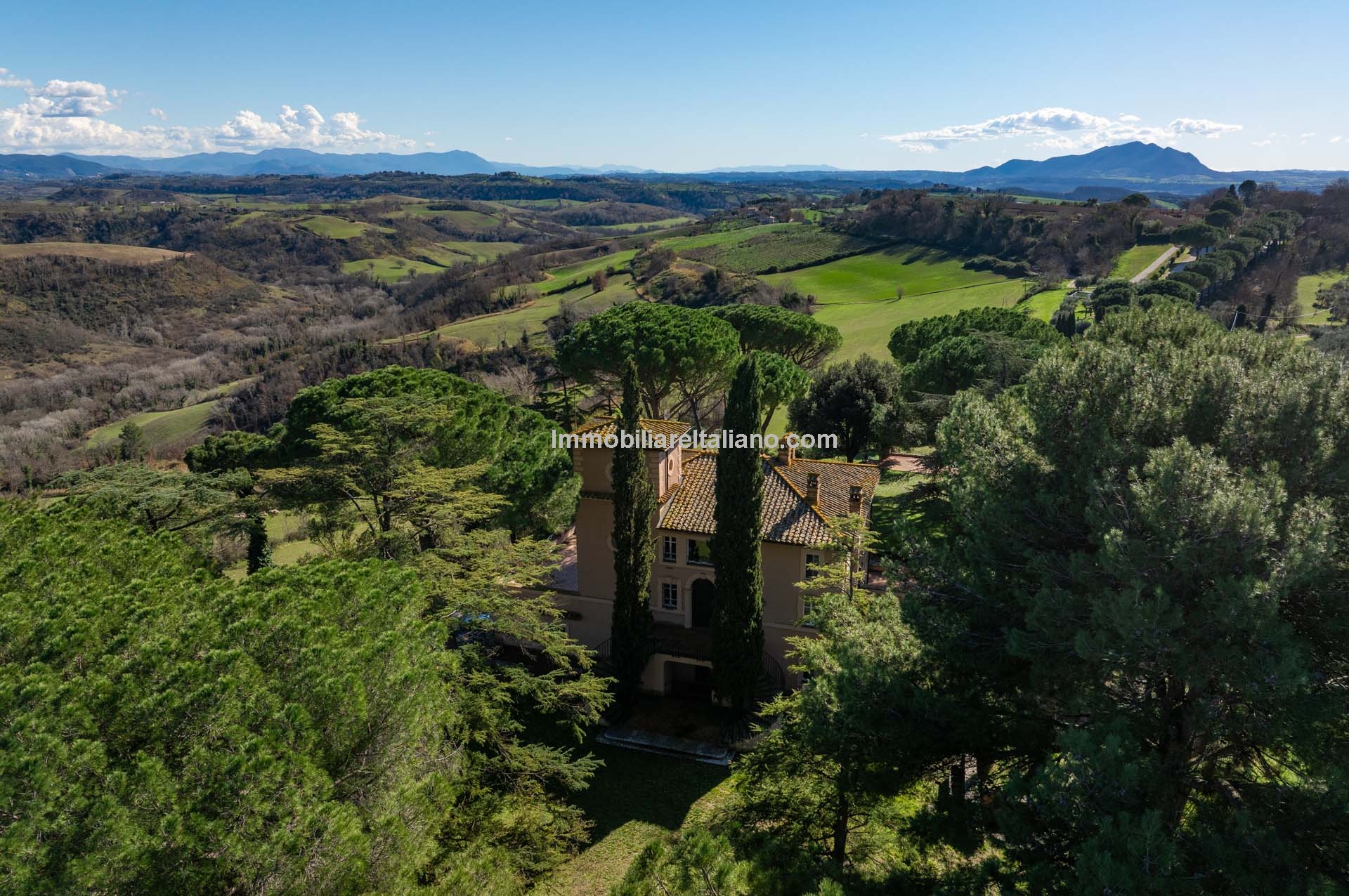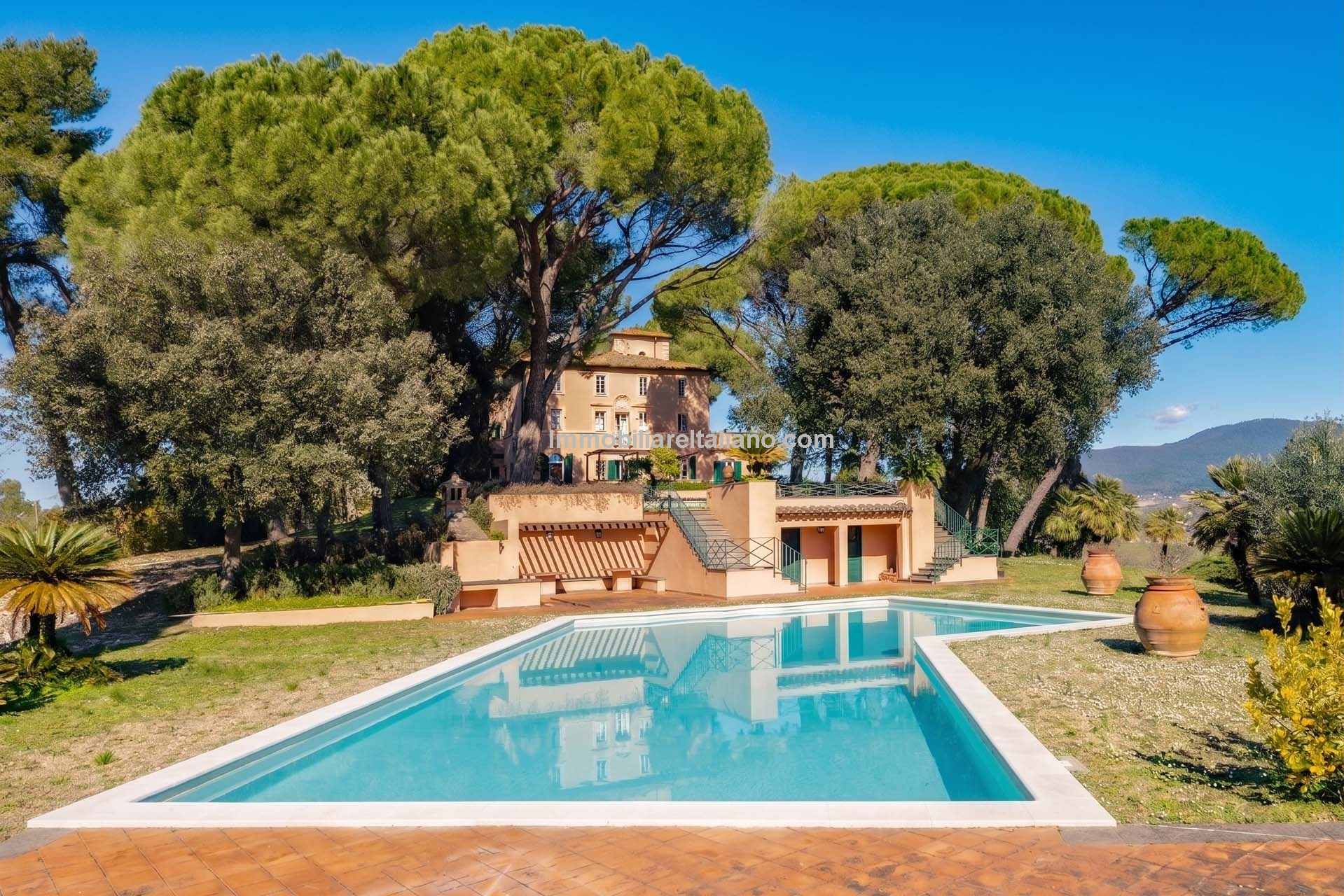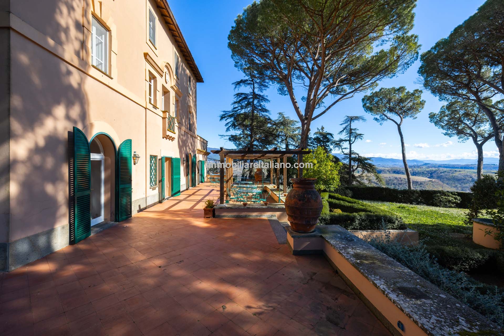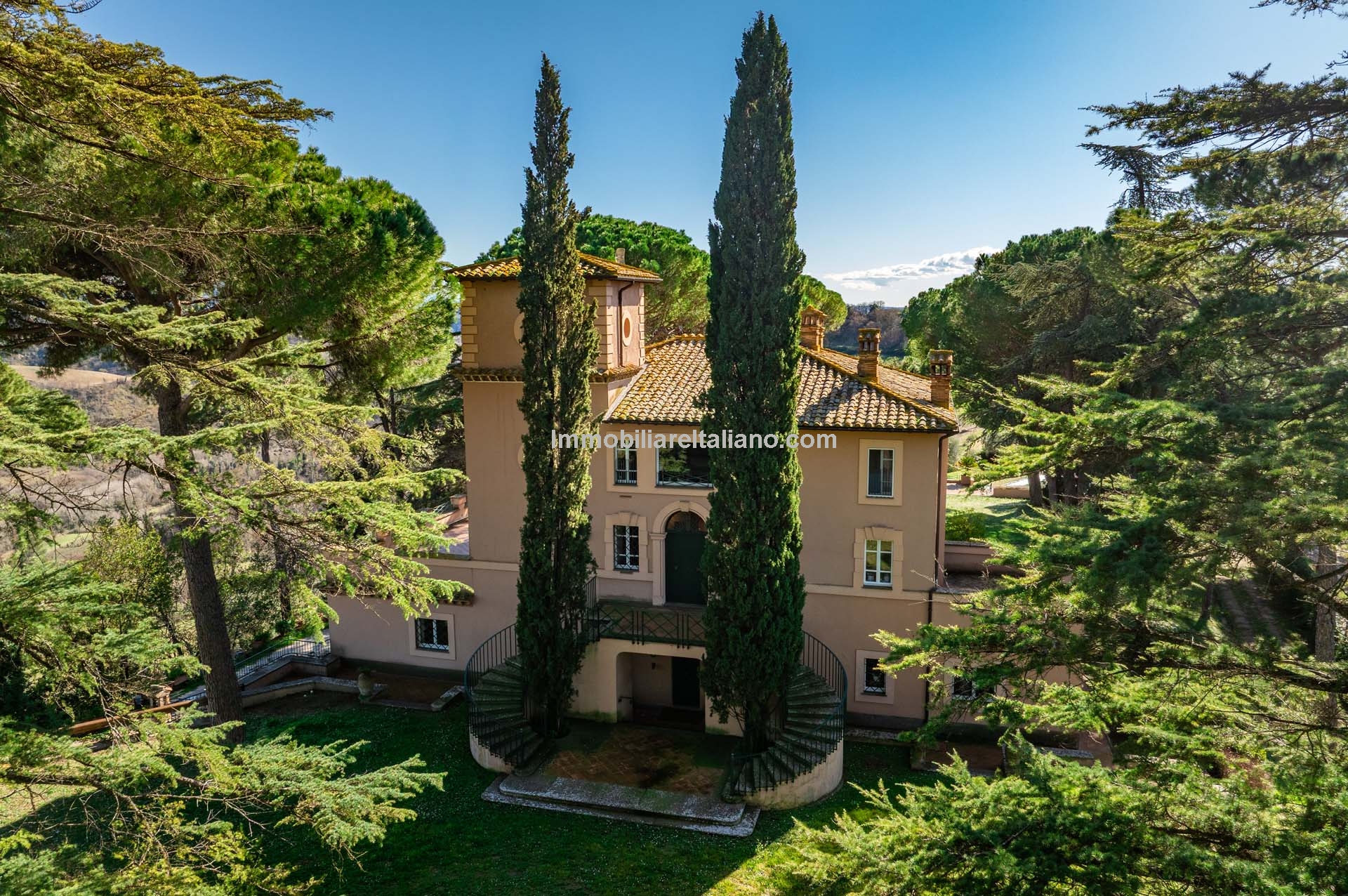 - MAIN FEATURES: Historic villa, parquet flooring, stone fireplaces, vaulted ceilings, panoramic terraces, gardens, swimming pools, tennis court, agricultural land, agricultural warehouses