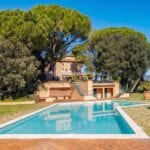 The main historic villa (approximately 855 sqm) dates to the 18th century and has been fully restored. It is arranged over four floors with an internal lift and includes 9 bedrooms and 7 bathrooms. The layout includes reception rooms, dining areas, kitchen facilities, and a caretaker’s apartment in the basement. The villa is set within its own landscaped park and includes a 15 × 7 metre swimming pool with pool house.