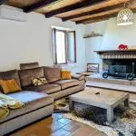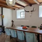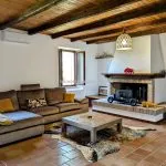 The farmhouse measures 355 square metres and is arranged over two floors. The ground floor includes a living room with access to a 38-square-metre porch, a kitchen, a bathroom, and a large former barn currently used as storage but suitable for conversion. The upper floor has a large living area with a thermo-ventilated fireplace and kitchenette, three spacious bedrooms—one with a 38-square-metre terrace—and a bathroom.