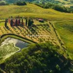 The land is divided into several types: approximately 35.6 hectares of woodland made up of maple, oak, hornbeam, beech and chestnut; 9.9 hectares of arable land currently used as pasture but suitable for crops or livestock; 1.7 hectares of productive organic olive grove; and a small organic vineyard of 4,500 square metres planted with Sangiovese, Albana and Cabernet Sauvignon vines. Around 2.1 hectares surrounding the house are fully fenced for privacy. Additional features include a private pond, a 100-cubic-metre rainwater well for irrigation, and direct access to woodland trails suitable for hiking or cycling.