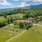 The farmhouse is surrounded by a 9,225 sqm private garden, which includes a vegetable plot.