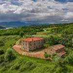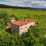Thanks to its location near the border of Umbria and Tuscany, the farmhouse is within an hour’s drive of many historic towns and attractions, making it ideal as a private residence or vacation rental with space for up to six bedrooms.