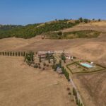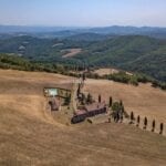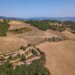 In a quiet and very panoramic position on the Tuscan hills in the province of Arezzo is this 171.6-hectare working farm, specialising in cattle breeding and agritourism. The property was renovated in 2011 and has two farmhouses used for the reception of guests and owners accommodation (8 bedrooms and 7 bathrooms) and also includes a restaurant that serves its guests vegetables and meats produced on the farm (Limousin and Charolais).