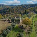 - MAIN FEATURES: Stone walls, wooden beams, terracotta floors, outbuildings to be restored, olive grove, woodland